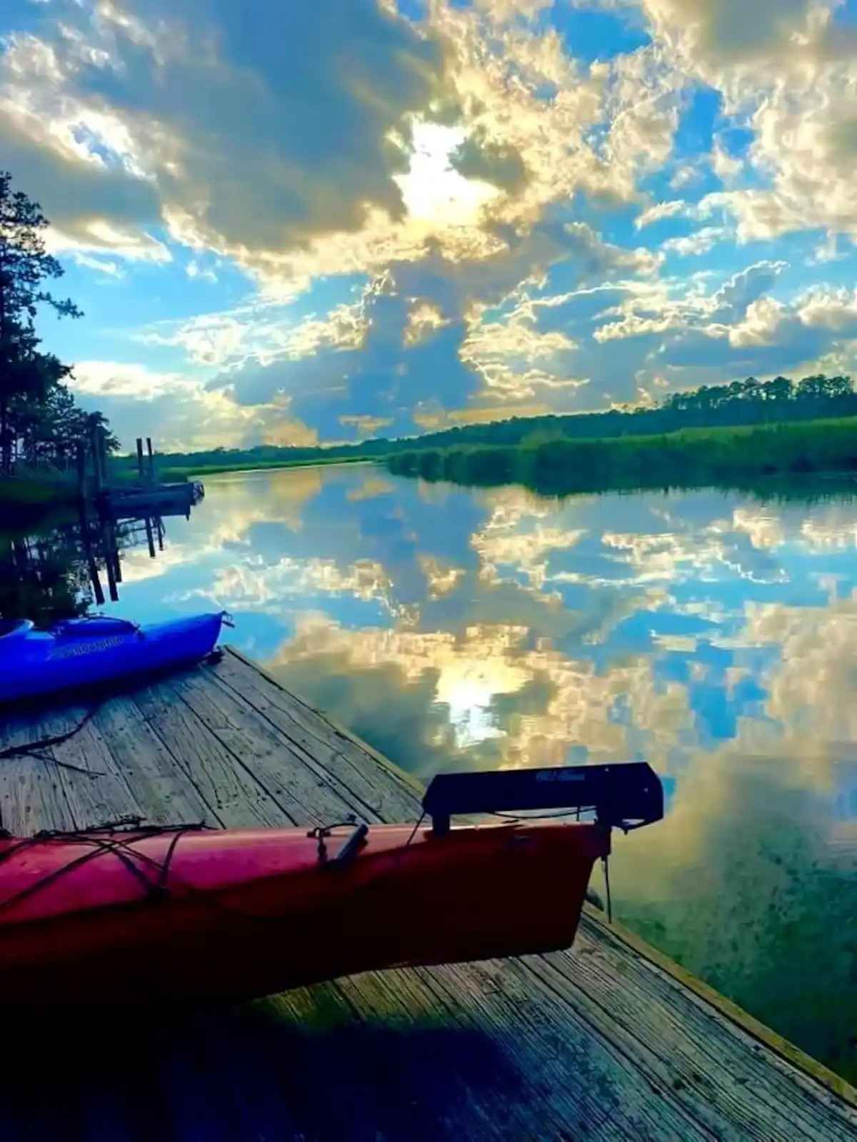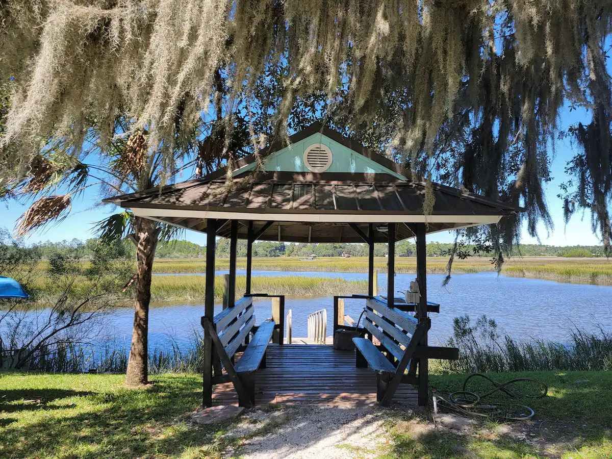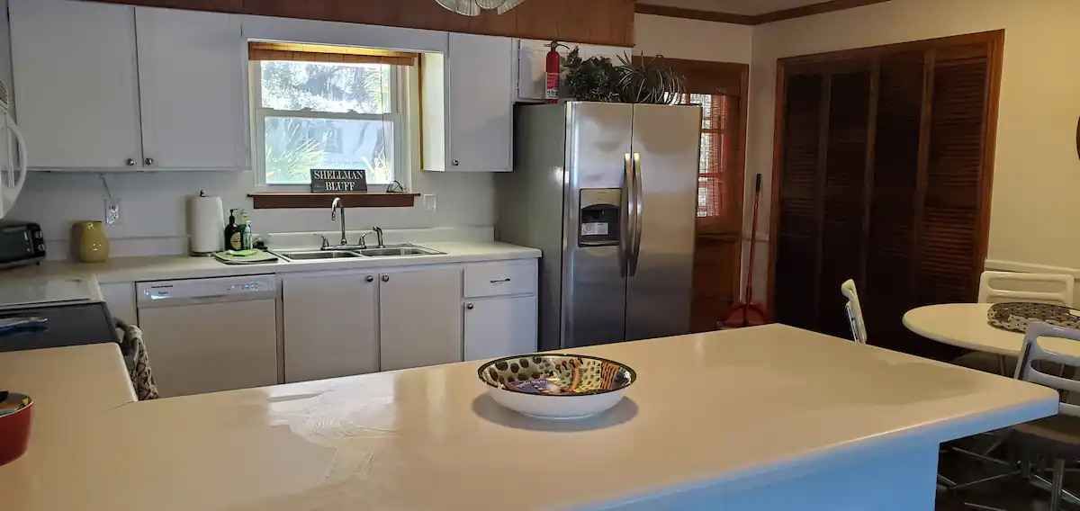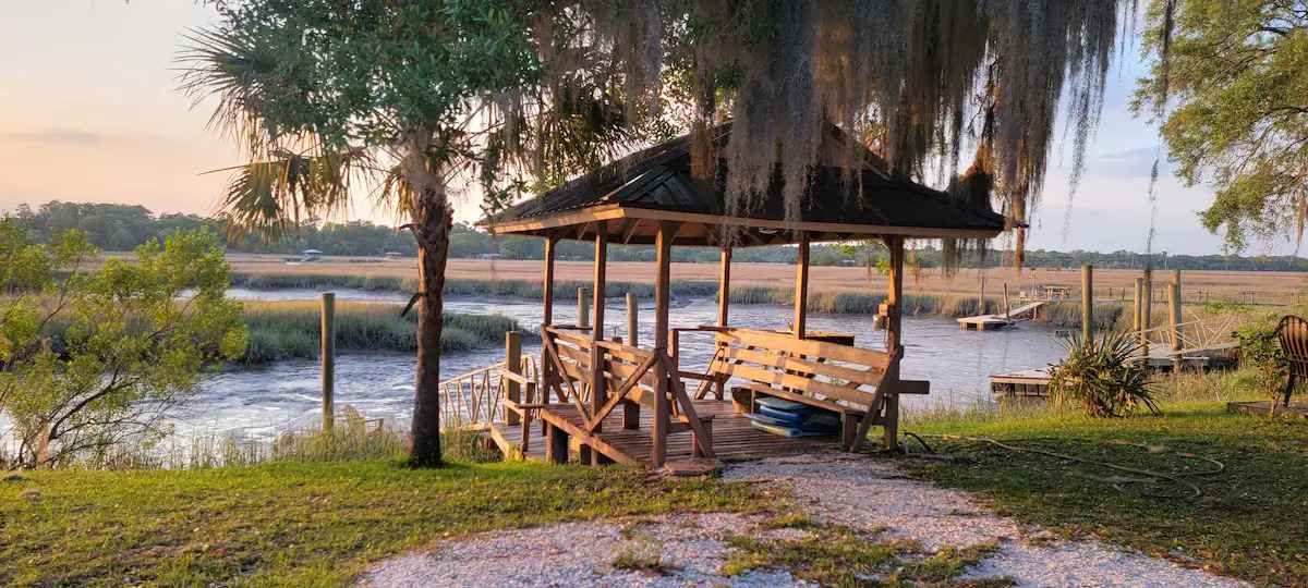 But in the end, visiting here is all about the water, the marsh views, and the dock. The home is on a wide tidal creek just 300' from the White Chimney river that leads to the Intra-Coastal Waterway (ICW) and Sapelo Island. The water is navigable much of, but not all of day. It comes and goes twice daily with the tides. At high tide, the water is 6 feet deep and feels very protected at this end of the creek. For boaters, there is a deep water public ramp 1/2 mile from the house... you can see it from our dock. Also, we keep four kayaks and several floaties for your use as well. Getting out on the marsh in a kayak or swimming in the fresh salt water is one of the best reasons to visit the area. (Be sure read up on the tides before you go out!)