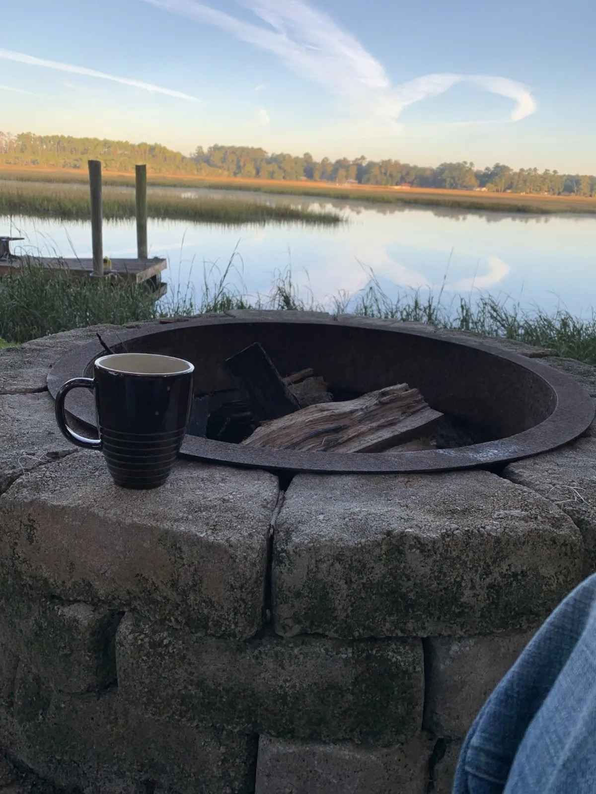 Nice firepit with ample seating and firewood.