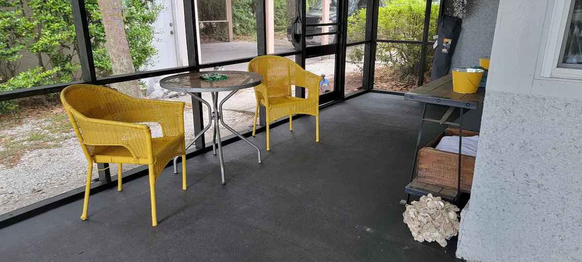 There is a large screened in porch overlooking the marsh.
