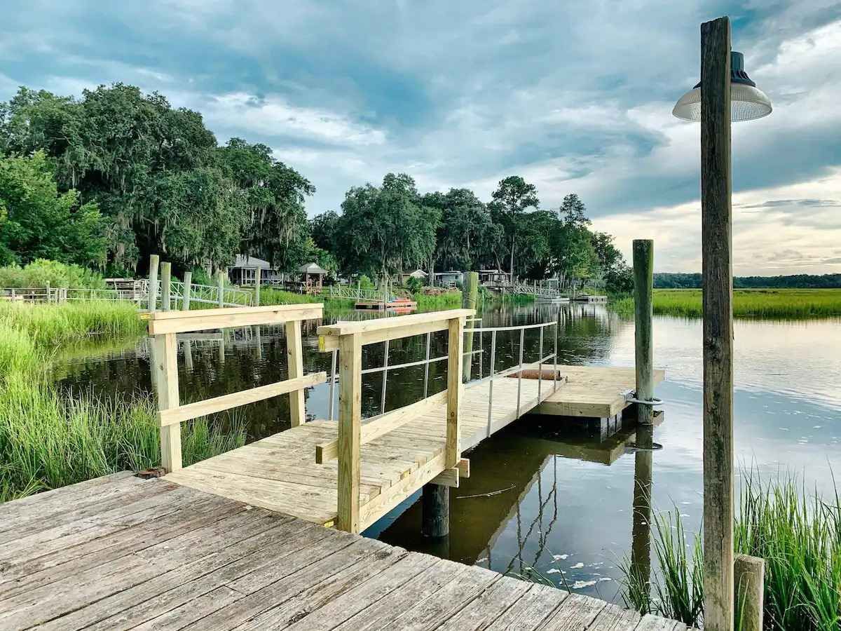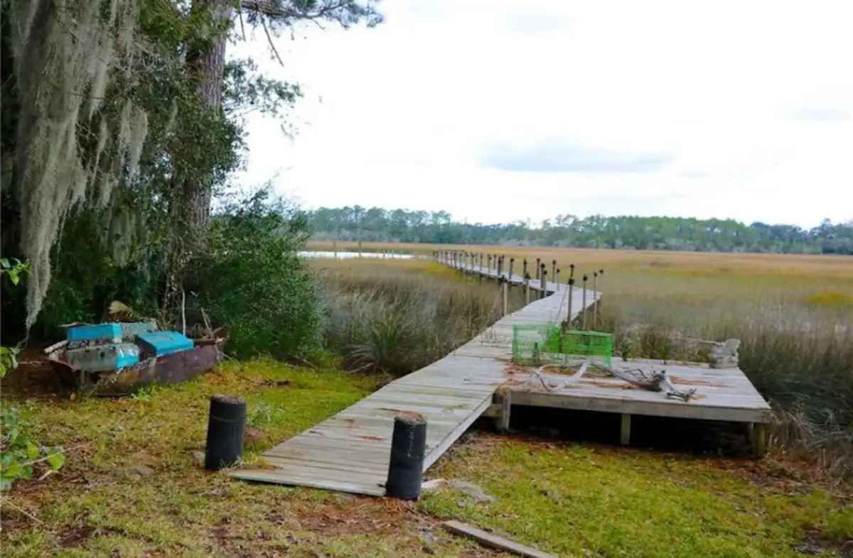 With 300 feet of private boardwalk leading to a floating dock this is the ideal choice for fishermen, kayakers or nature lovers looking for a peaceful getaway! Conveniently located in Shellman Bluff 12 minutes from the I-95. This 2 bed, 2 bath home has a large living & dining area & well equipped kitchen that comfortably accommodates 6. Explore the marsh by kayak, fish off the dock , admire the wildlife... this is what memories are made of!