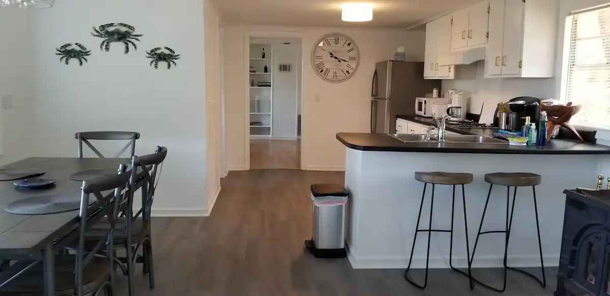Bright, good sized living room with amazing view of the marsh. Large eat in kitchen with same amazing view on the marsh and