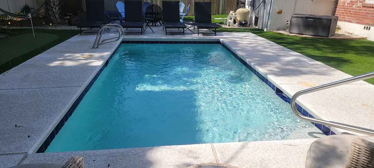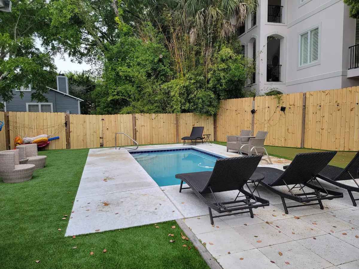 Guests will enjoy our stunning shared fenced-in yard with inground pool, putting green and firepit.