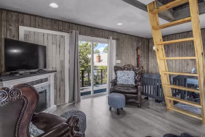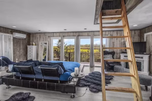 Our very unique, rustic two-bedroom tiny home offers a cozy yet functional layout designed for comfort and views: