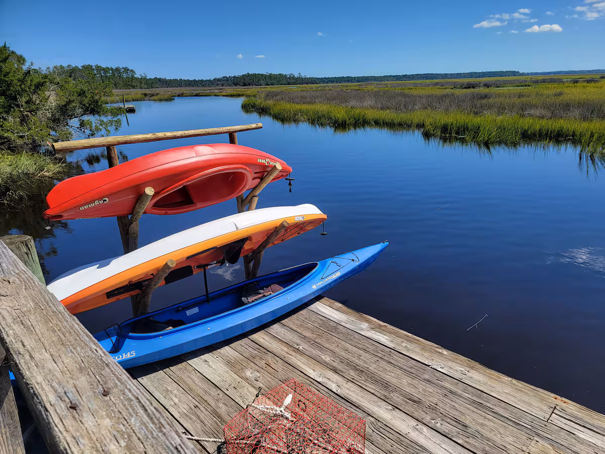 🛶 Kayaking & Fishing: Explore Blackbeard Creek in the free kayaks provided, drop a line, or fish for trout right off the shared dock.