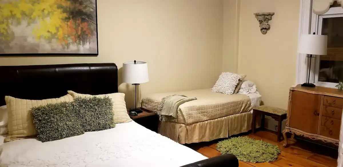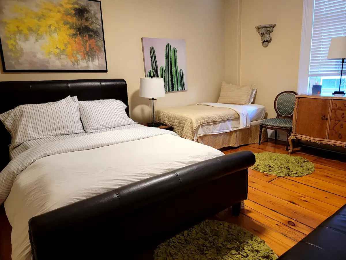 LARGE THREE STORY Victorian ROW HOUSE 1870. We accept Large groups in our beautiful downtown. Free WiFi, Hair dryers, FLAT SCREEN TV's. Full Kitchen, dining & living room access. Queen,king & single beds. Sales tax WILL BE CHARGED before arrival (14.975%) Pet fees applies.